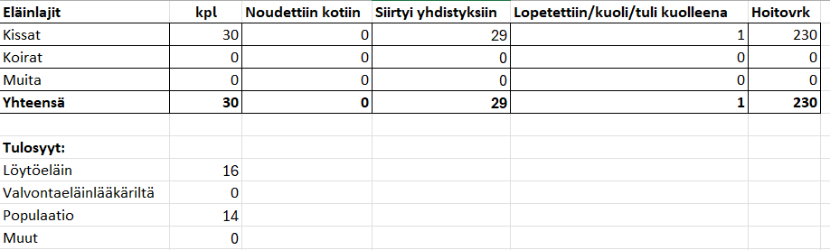 2024 voimaan tulleen eläinten hyvinvointilain 26 § mukaan kunnan on laadittava ja julkaistava tilasto talteen otetuista löytöeläimistä vuosittain.